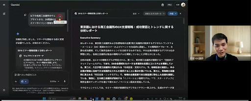 生成AI Gemini の Deep Reserch を活用して、網羅的な情報収集から企画立案までを一気通貫で実施。