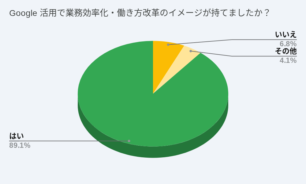 89%超の方が、Google を活用した業務効率化・働き方改革のイメージを持てた と回答。